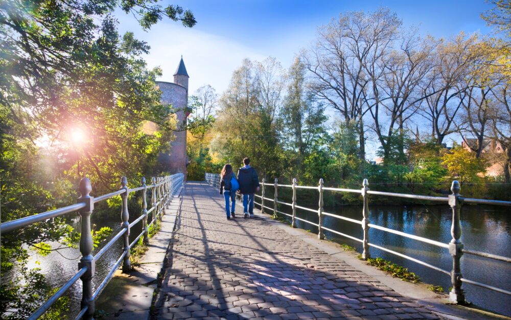 Der Minnewaterpark ist ein zauberhafter Ort für einen Spaziergang und Schauplatz einer tragischen Liebesgeschichte. Der Legende nach soll die ewige Liebe erfahren, wer mit seiner/m Geliebten über die Minnewaterbrücke geht.